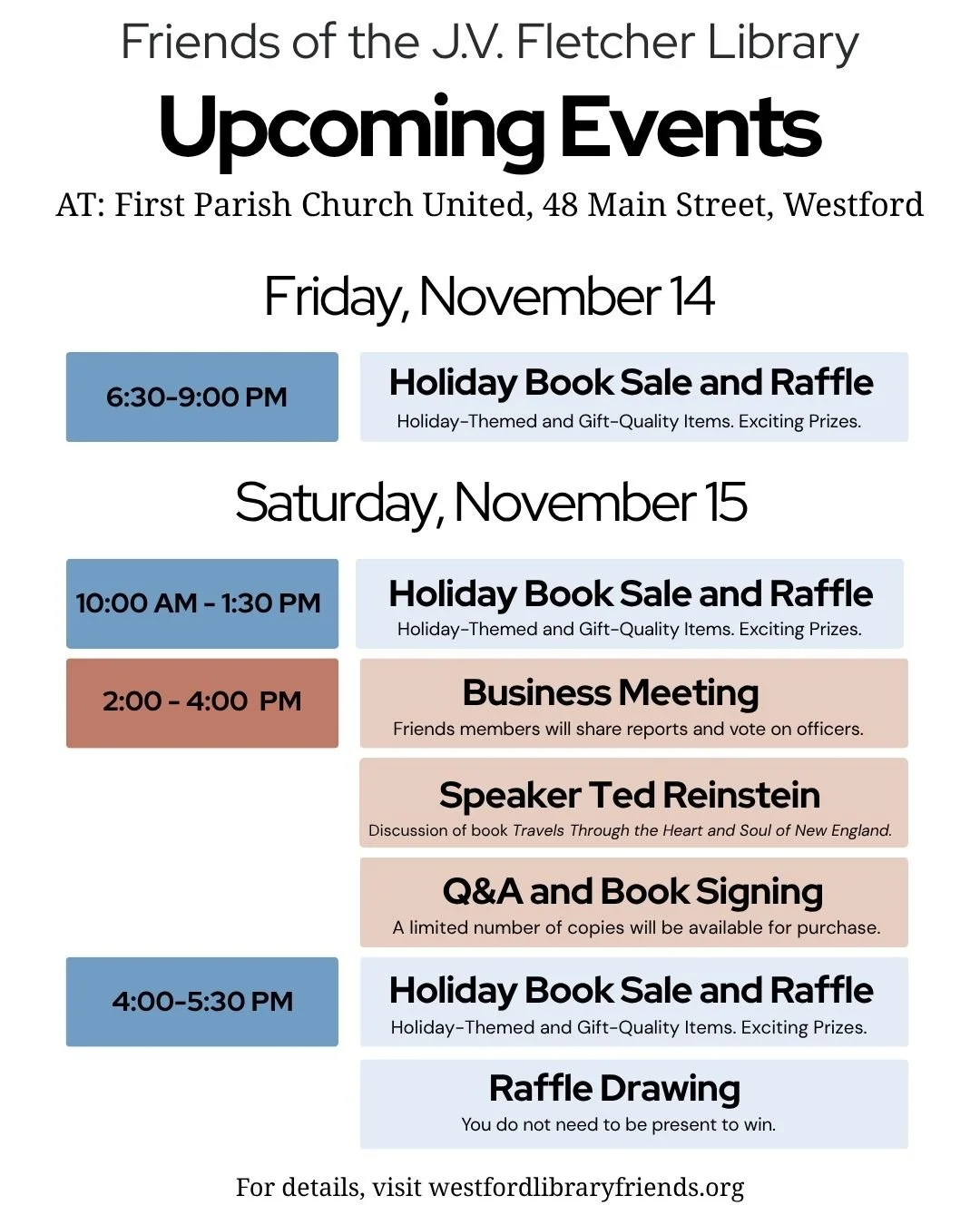 | 10:00 AM-1:30 PM | Holiday Book Sale and Raffle |